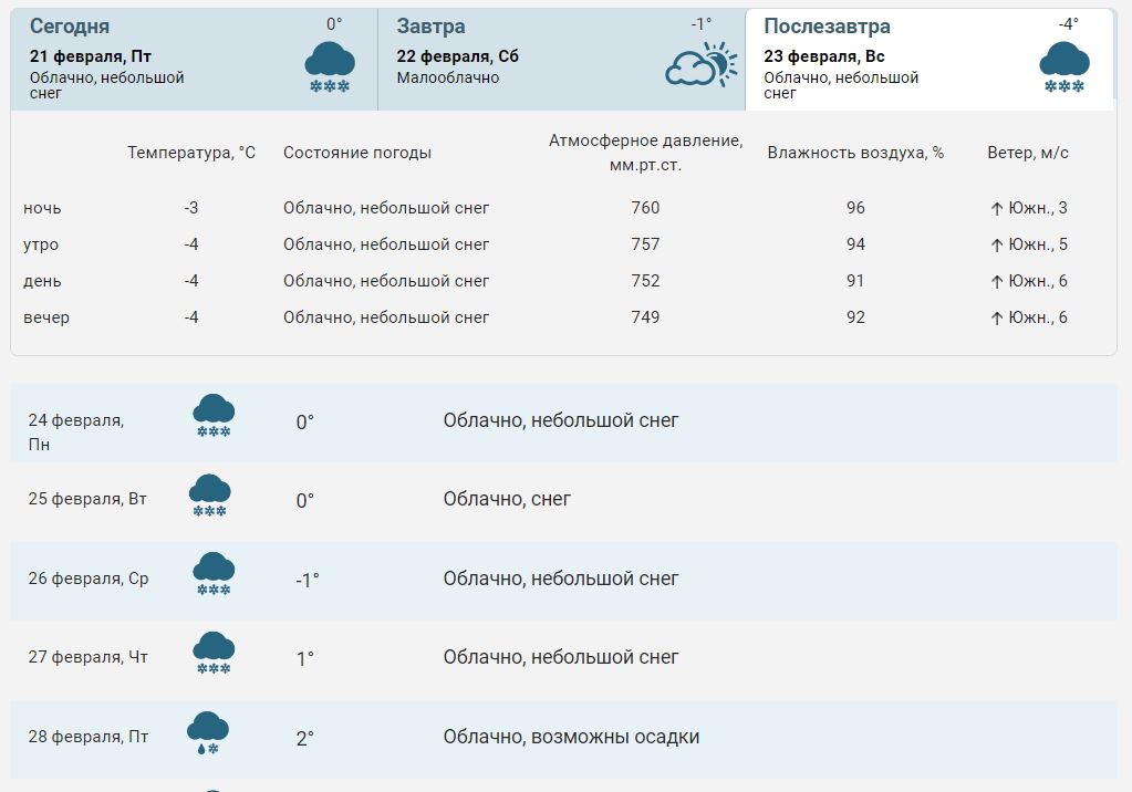 В субботу, воскресенье и понедельник, который тоже будет выходным, характер погоды останется таким же — облачно, тепло днём и небольшой минус по ночам, небольшой снег. В воскресенье возможно солнце, а в понедельник — снегопад.