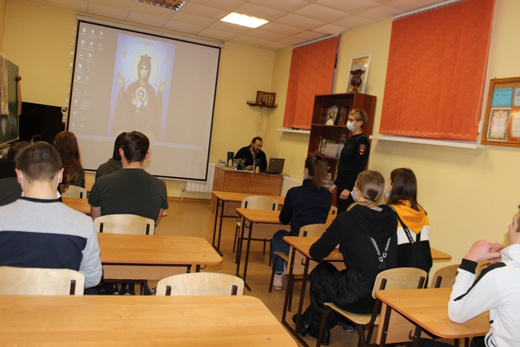 Сотрудники чайковской полиции совместно с представителями Общественного совета и «Управления общежитиями СПО Пермского края» организовали для студентов учебных заведений городского округа встречу с помощником по образованию благочинного священника Чайковского благочиния Константином Мураном.