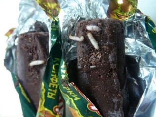 Решив отведать любимых конфет марки "Космос" от кондитерской фабрики "Пермская", господин Якимов обнаружил червей. Он сфотографировал "находку" и написал обращение в Роспотребнадзор.
