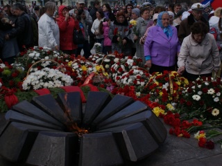 Стоит отметить, что цветов было по-настоящему много. Отрадно, что люди целыми семьями, с колясками подходили и возлагали цветы.