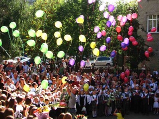 Первоклассники, старшеклассники, учителя и родители с первыми звуками школьного звонка отпустят в небо шары с колокольчиками желаний.