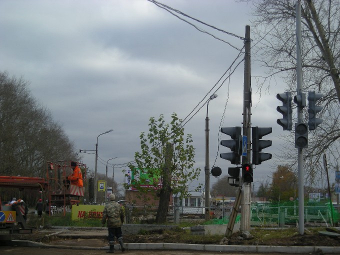 18 октября у «горбатого» моста на пересечении улиц Приморский бульвар и Промышленная идет установка новых светофорных объектов.