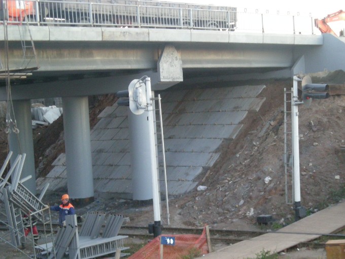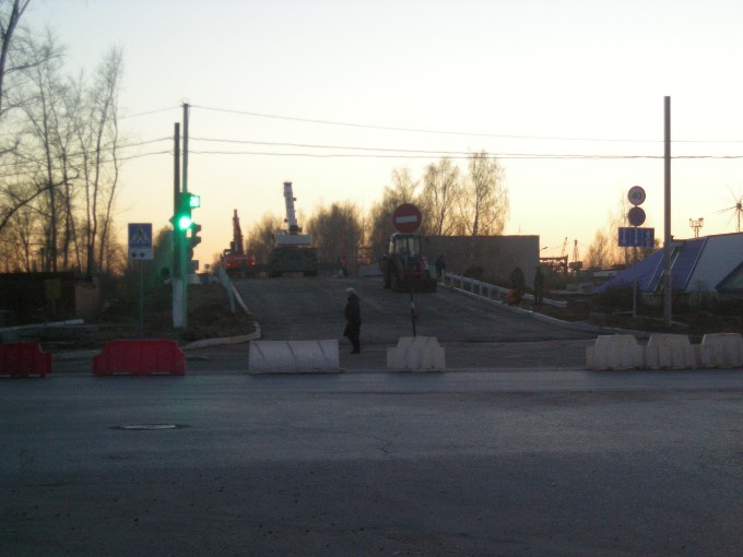 На сегодняшний день подрядчиком установлены новые светофоры с таймером отчета секунд, при въезде на мост выставлены новые дорожные знаки - направление движения по полосам.