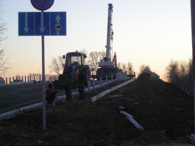 На «горбатом» мосту идет асфальтирование, устанавливаются ограждения