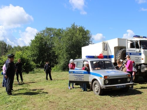 Начальник ГИБДД Отдела МВД России по Чайковскому району Сергей Стариков в очередной раз рассказал школьникам о важности соблюдения правила дорожного движения, напомнил о необходимости быть внимательными на дороге. Некоторые дети забывают о том, как нужно вести себя в транспорте. Об этом им тоже напомнили. Инспекторы ПДН рассказали о том, как уберечь себя от мелких краж и просто потери личного имущества (сотовые телефоны, ключи и т.п.); о том, что нельзя разговаривать с незнакомыми людьми и трогать вещи, оставленные без присмотра. Ребята с удовольствием участвовали в диалоге и задавали вопросы. Кроме этого, для детей организован показ спец.техники и спец.средств, стоящих на вооружении полиции. Здесь, каждый ребенок мог примерить средства защиты (бронежилет, маска, шлем), подержать в руках резиновую палку, присесть в патрульном автомобиле ДПС и в автомобиле «Камаз», предназначенном для перевозки лиц задержанных и арестованных. Так же, вниманию детей было представлено несколько видов оружия, что вызвало особый интерес у мальчишек. Одним из самых запоминающихся моментов мероприятия стала встреча с кинологами. Обученная собака выполняла все команды полицейского, чем привела в восторг собравшихся детей. Дети внимательно следили за работой профессионала. Некоторые из них признались, что хотели бы владеть навыками общения с таким умным животным.