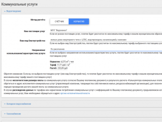 В соответствующих строках «Калькулятора» нужно ввести адрес жилого помещения, количество зарегистрированных в нем человек, период расчета, для каждого вида коммунальных услуг указать метод расчета и выбрать поставщика. Можно рассчитать стоимость водоснабжения, электроэнергии, отопления, газа, как по нормативам, так и по показаниям приборов учета.