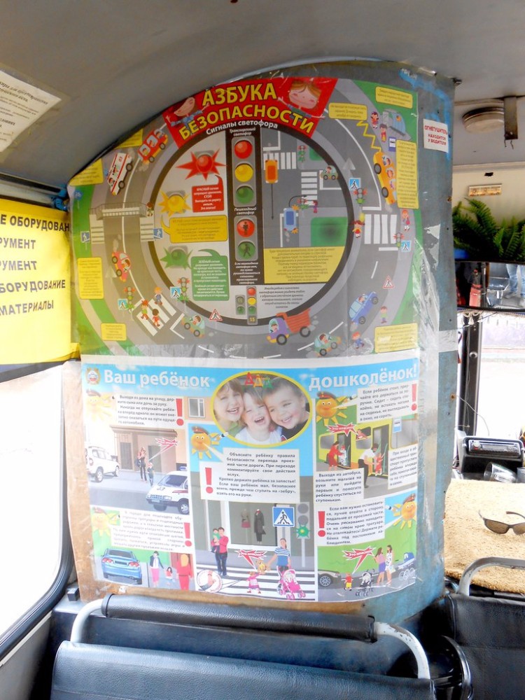 Внутри автобуса пассажиры могли изучить плакаты о безопасном поведении на дороге, а дети получить от кондуктора специально разработанные листовки, в которых в понятной форме рассказывалось о Правилах дорожного движения.