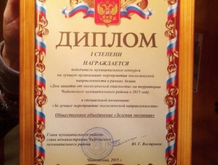 Общественное объединение трудится исключительно за счет самих участников и не имеет каких-либо бюджетных дотаций, поэтому экологистов обрадовал подарок, врученный совместно с дипломом. «Помимо диплома нам подарили подарочные сертификаты, которые можно обналичить в одном из хозяйственных магазинов города», – рассказала одна из активисток «Эволюции» Наталья Васильева.