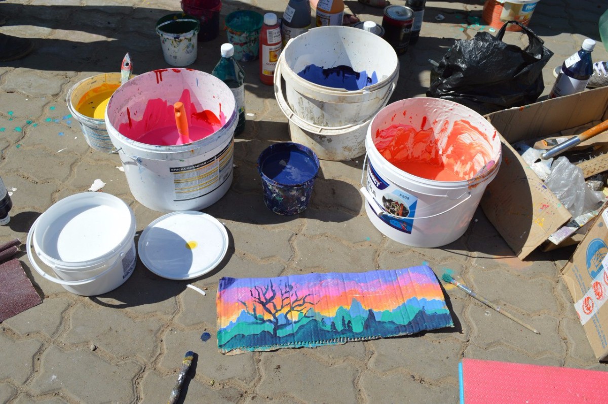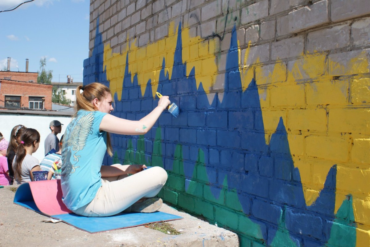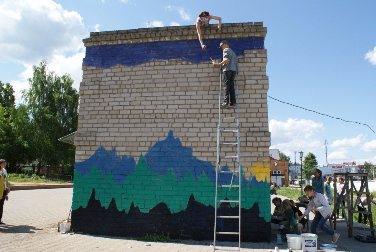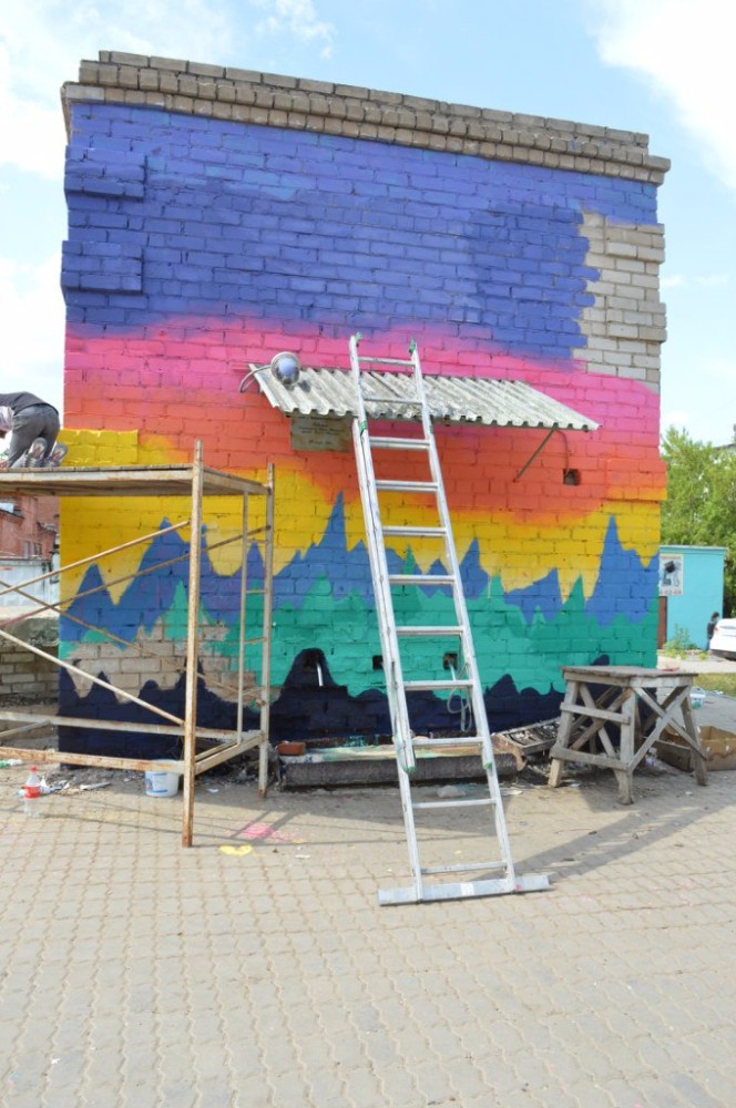 Подготовка заняла несколько дней: написание проекта, поиск спонсоров, закупка материалов, очистка стен здания от рекламных объявлений и подготовка их к покраске.