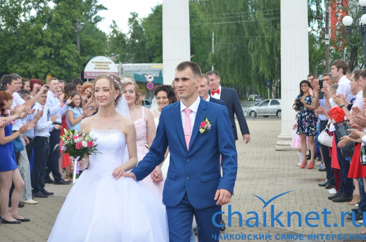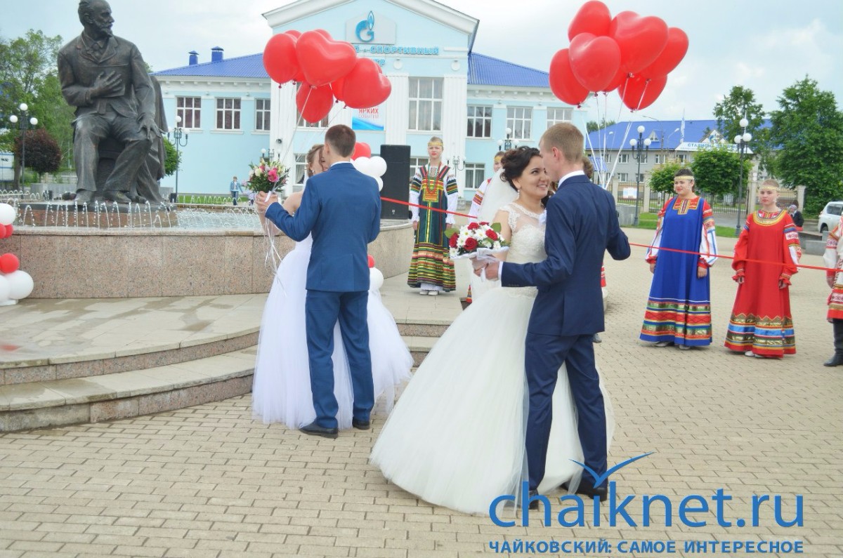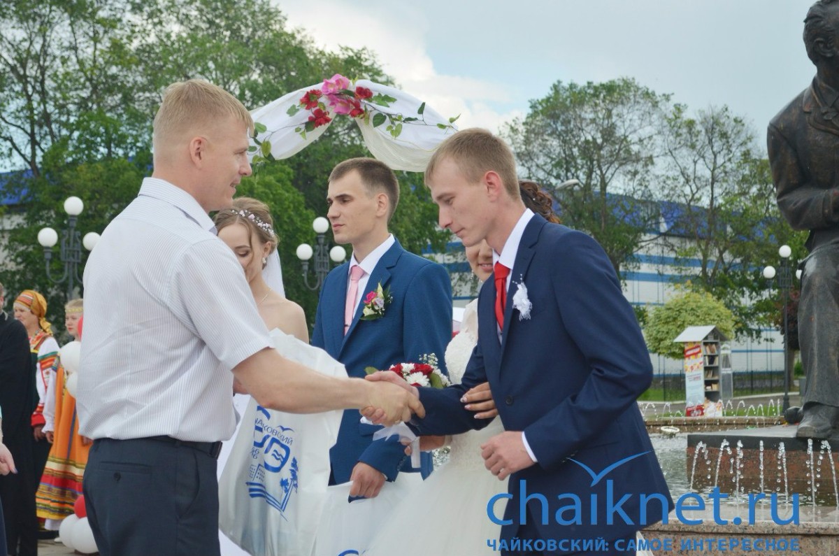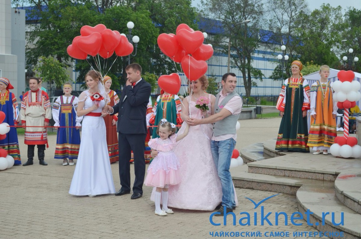 11 июня в Чайковском состоялось одно из красивейших мероприятий программы празднования 60-летия Чайковского – свадебная вечерка «На двоих одно счастье!». В этот особенный день на площади Чайковского принимали поздравления четыре счастливые пары – Александр и Алия Петроченко, Игорь и Светлана Пономаревы, Максим и Мария Кичигины, Александр и Надежда Федоровы.