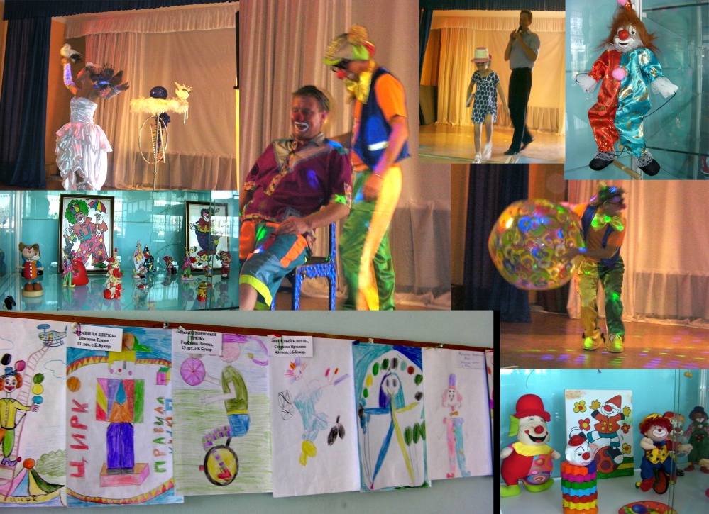 Цирк царил и в фойе центра – здесь была расположена выставка работ участников конкурса. Четверо из них получили от артистов цирка подарки за свои работы: Валерия Покликаева (п. Бурёнка, 2 класс, рисунок «Клоун-жонглёр»), Алёна Ахунзянова (с. Фоки, 12 лет, рисунок «Репетиция»), Соня Сальникова (с. Фоки, 5 лет, рисунок «Клоун-жонглёр») и Егор Бурнышев (с. Фоки, 6 лет, рисунок «Клоун на качелях»).