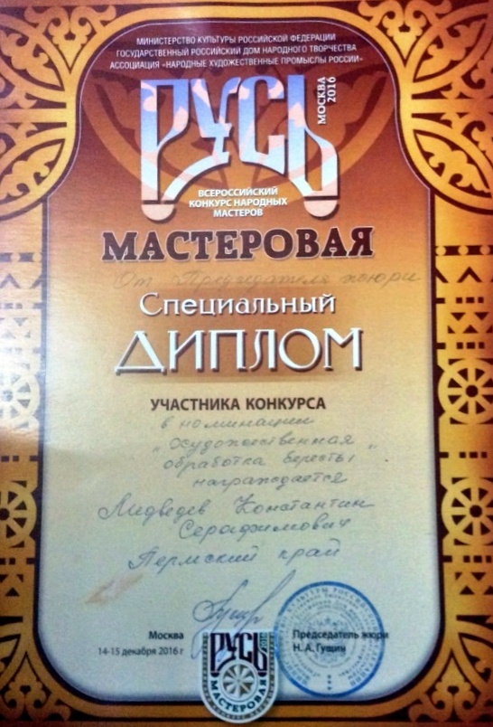 Константин Медведев из Чайковского получил спецприз конкурса «Русь мастеровая-2016»