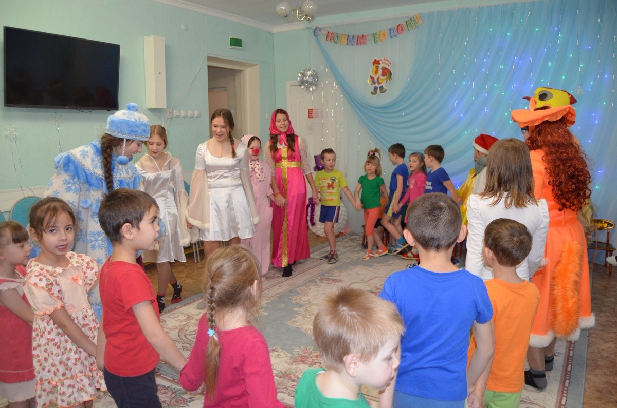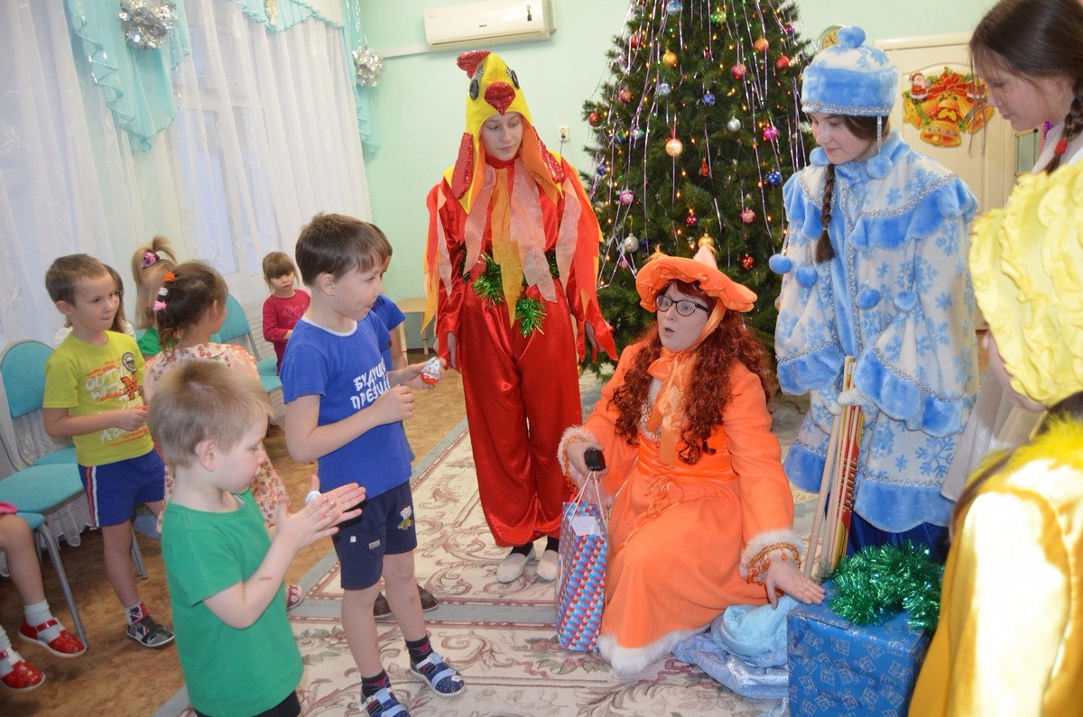 Накануне новогодних праздников ребята из Дома детского творчества «Искорка» - активисты Российского движение школьников и учащиеся творческих объединений устроили настоящую сказку для ребят из Центра помощи детям, оставшимся без попечения родителей. В гости к малышам с новогодними играми и песнями пришли герои из любимых сказок – Пятачок, лиса, снеговики, Машенька и Снегурочка.