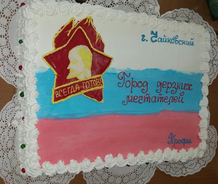 В завершение встречи участники пили чай с огромным тортом, который украшала пионерская символика, общались и строили совместные планы на будущее.