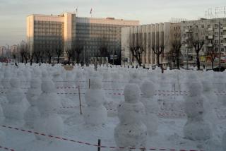 В январе в центре Перми у гостиницы «Урал» появилась «армия снеговиков» - проект автора «Пермских ворот» Николая Полисского.