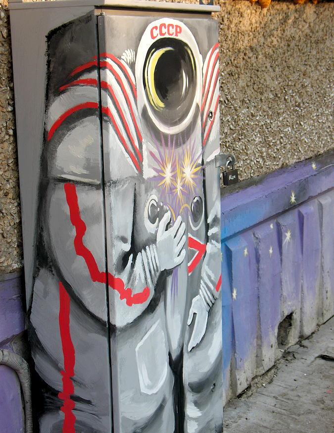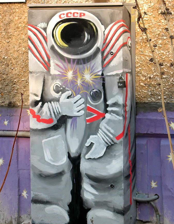 Автор посвятил своё граффити Дню космонавтики и Георгию Гречко.