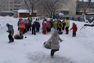 Мероприятие было призвано напомнить детям об осторожности на дороге и научить их правилам безопасного катания на санках и тюбингах.