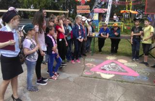 Ребята, отдыхающие в летних оздоровительных лагерях, стали участниками конкурса детских рисунков на асфальте, который был посвящён безопасности на дорогах и соблюдению ПДД.