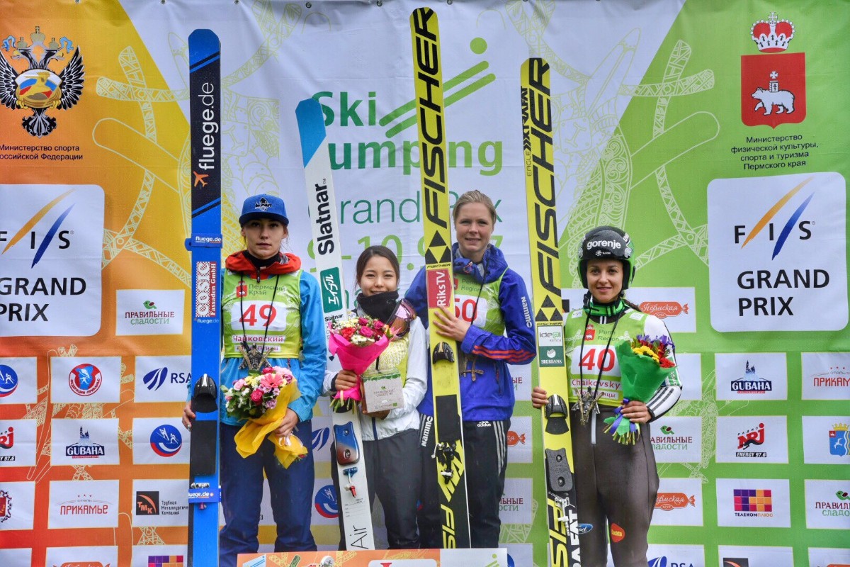 У девушек предпоследний этап Летнего Гран-при принес бронзу лидеру сборной России Ирине Аввакумовой, серебро — финской спортсменке Юлии Кюкканен и золото — Саре Таканаши из Японии, звезде мировых женских прыжков с трамплина.