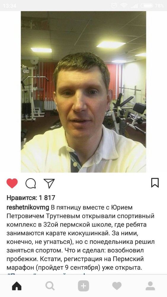 Максим Решетников пишет, что после открытия спорткомплекса в пермской школе № 32 решил возобновить тренировки.
