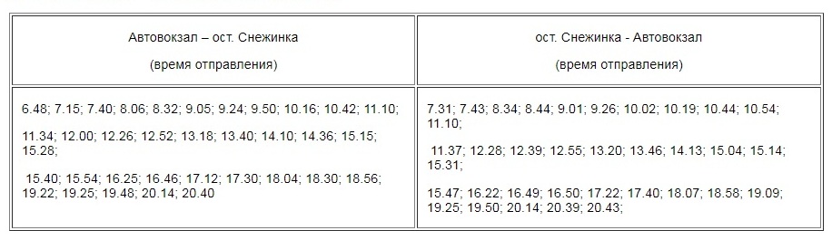 Расписание движения автобусов по муниципальным автобусным маршрутам №114 «г. Чайковский – с. Ольховка (ул. Садовая)» и №112 «г. Чайковский – ст. Каучук» до остановки «Снежинка».