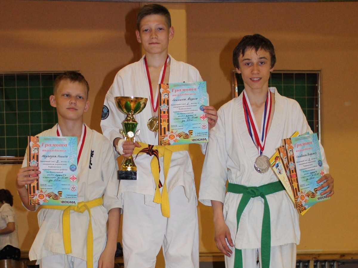 В преддверии празднования Дня победы, 7 и 8 мая, в Марковской ДЮСШ состоялось открытое первенство по кекусинкай каратэ. В соревнованиях приняли участие спортсмены из 12 команд. География участников состязания обширная: ребята из Пермского края, Удмуртии, Кировской области. Чайковская территория была представлена двумя сборными - Чайковской федерацией киокусинкай каратэ и ДЮСШ п. Марковский. 208 спортсменов в возрасте от 7 до 17 лет оспаривали звание лучшего в трех дисциплинах: ката, ката командное и кумитэ. За два дня сморевнований были разыграны 33 комплекта наград.