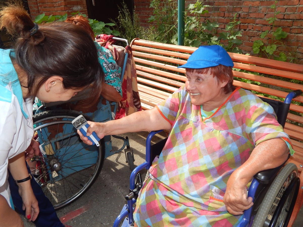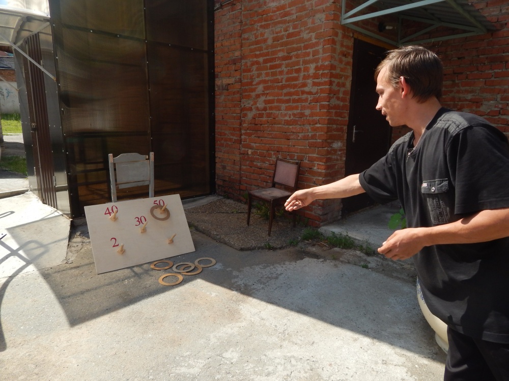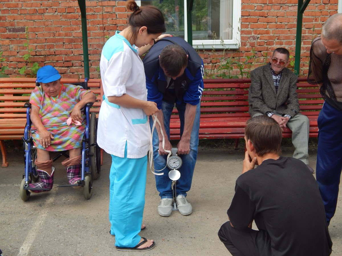 Еженедельно и доме-интернате проходят спортивные мероприятия, направленные на поддержание активности жителей и укрепление здоровья. Клиенту учреждения проверили свои силы в пяти дисциплинах: кистевая динамометрия (измерение силы кисти), становая динамометрия (измерение силы спины и плечевого пояса), метание набивного мяча, игра Городки и дартс.