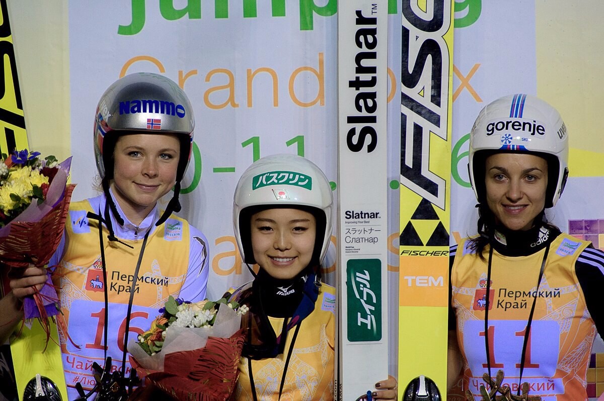 В женском зачете соревнования являлись заключительными в рамках Гран-при. В финале соревнований женских сборных Сара Таканаши из Японии вновь была непобедима, дважды заняв первую ступень пьедестала. Таким образом, Таканаши стала 6-кратной победительницей Гран-при. В первый день второе место заняла Марен Лундбю из Норвегии, третье — и Майа Втич из Словении. Второй день соревнований принес «серебро» Карине Вогт из Германии и «бронзу» Ирине Авакумовой.