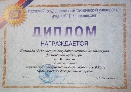 С 23 по 25 сентября на базе учебно-спортивного центра студентов ИжГТУ имени М.Т. Калашникова «Галёво» в Воткинском районе Удмуртской Республики уже в шестой раз проходил туристский слёт студентов вузов Приволжского федерального округа. В мероприятии принимали участие команды вузов из таких городов, как Ижевск, Елабуга, Саратов, Чебоксары, Глазов и многих других. Город Чайковский представляла команда Чайковского государственного института физической культуры в составе студентов кафедры «Туризма и менеджмента».
