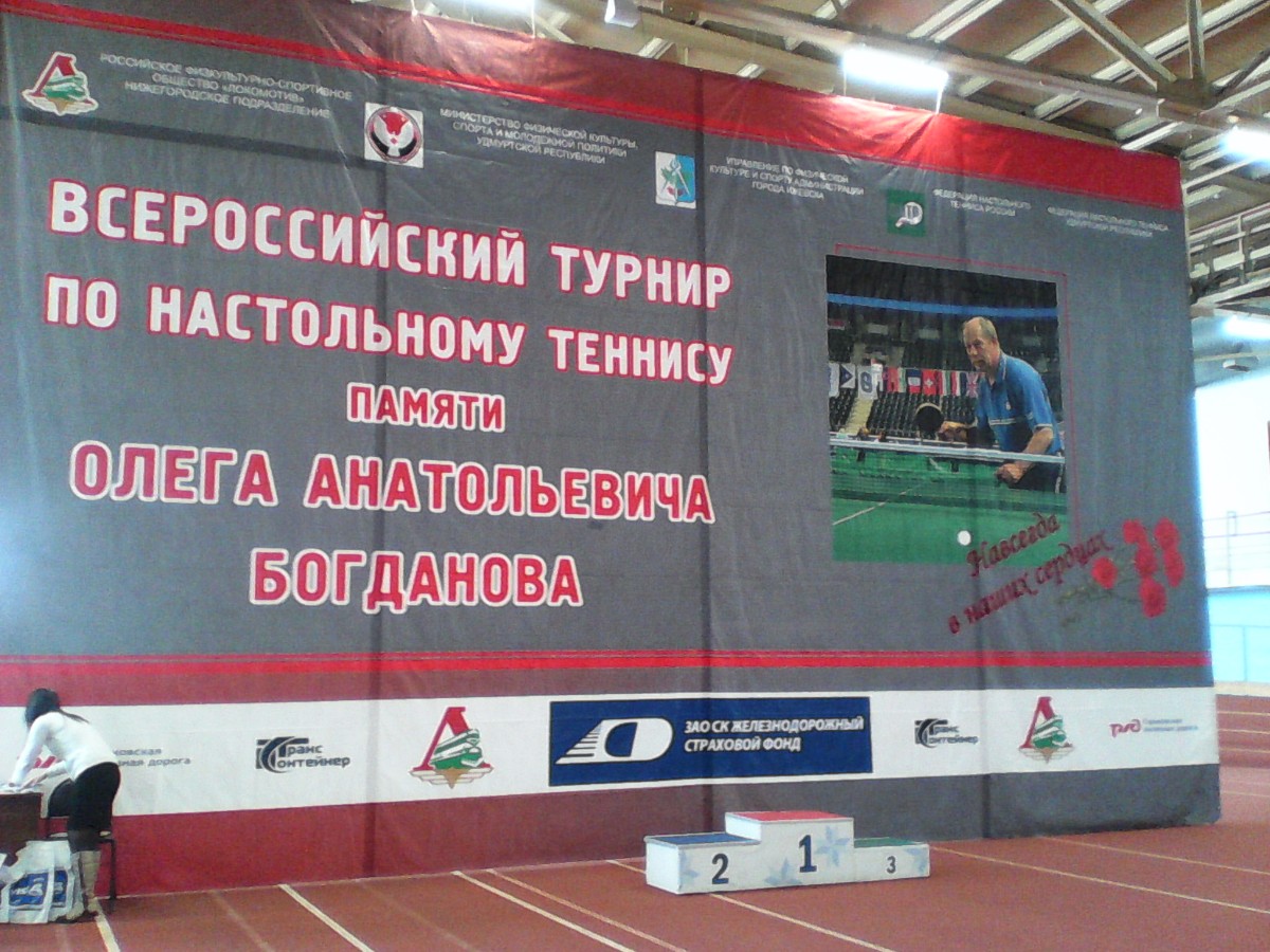С 31 марта по 2 апреля в Ижевске в спортивном манеже ФОЦ «Здоровье» состоялся Всероссийский турнир по настольному теннису памяти А.О.Богданова. На этот престижный рейтинговый чемпионат собралось около 200 участников из Екатеринбурга, Перми, Нижнего Новгорода, Челябинска, Ижевска, Набережных Челнов, Чайковского, Нефтекамска и других городов.